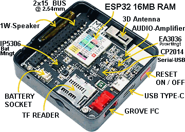 M5Stack Basic besteht aus zwei trennbaren Teilen. - Der obere Teil enthält alle Arten von Prozessoren, Chips und einige andere Slotkomponenten.